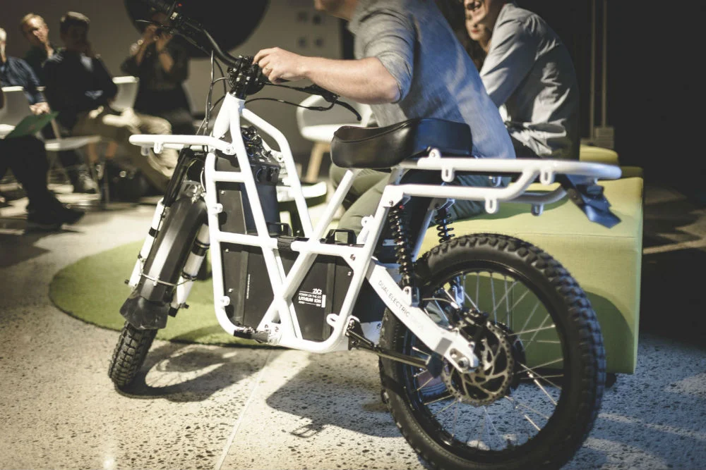The near silent Ubco is powered by a 40-amp/hour lithium-ion battery, can travel 100km to a charge, and can be fully recharged in six hours at a cost of 88 cents worth of NZ electricity.